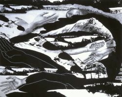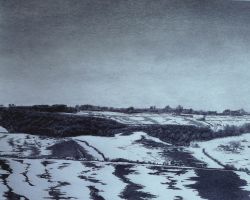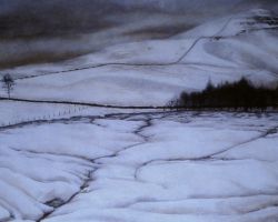The early landscape drawings were based on a location in the Vale of Glamorgan in particular concentrating on the theme of snow and winter At this time forms are simplified and structural patterns are more easily revealed, the chaos of nature is subdued, and more barren skeletal elements emerge. The later drawings attempt to incorporate the human figure into the landscape an idea explored further in collages and paintings.”